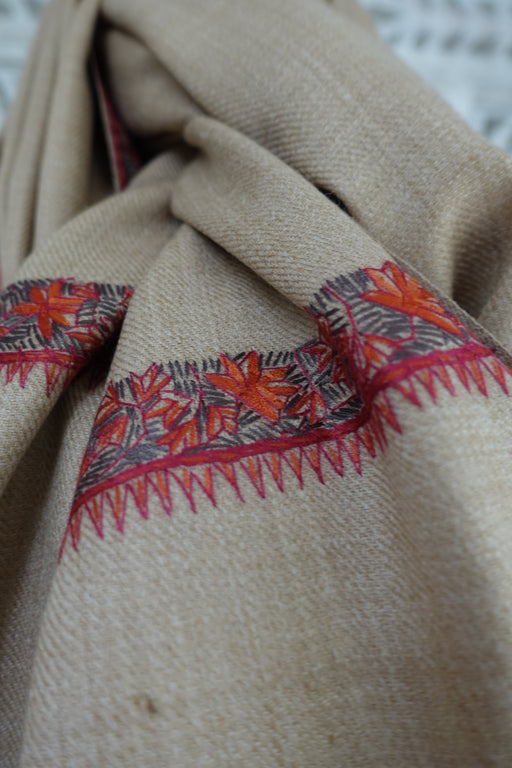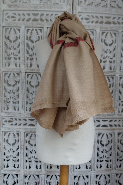 Beige & Red Vintage Wool Embroidered Shawl - New