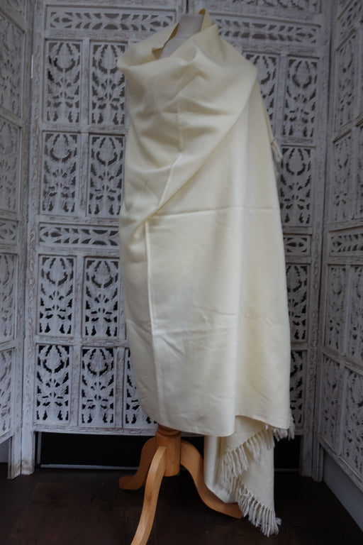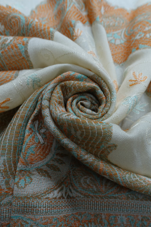 Off White Wool Pastel Coloured Embroidery Winter Shawl - New