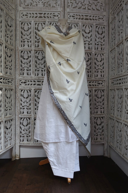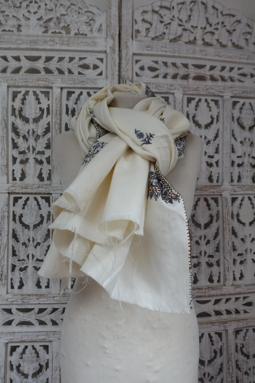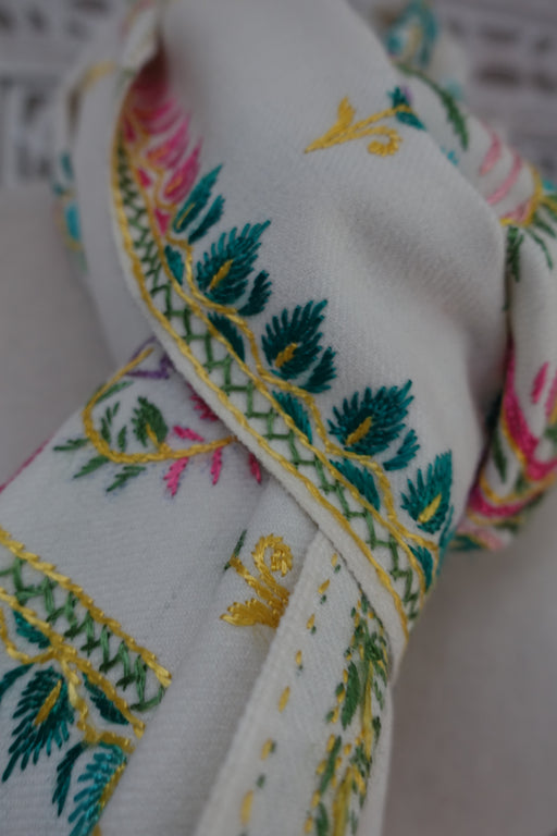 Off White Wool Embroidered Narrow Shawl - Preloved