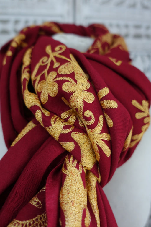 Stay warm and toasty while adding a unique touch to your wardrobe with this one-of-a-kind maroon wool embroidered shawl! Perfect for throwing on at...
