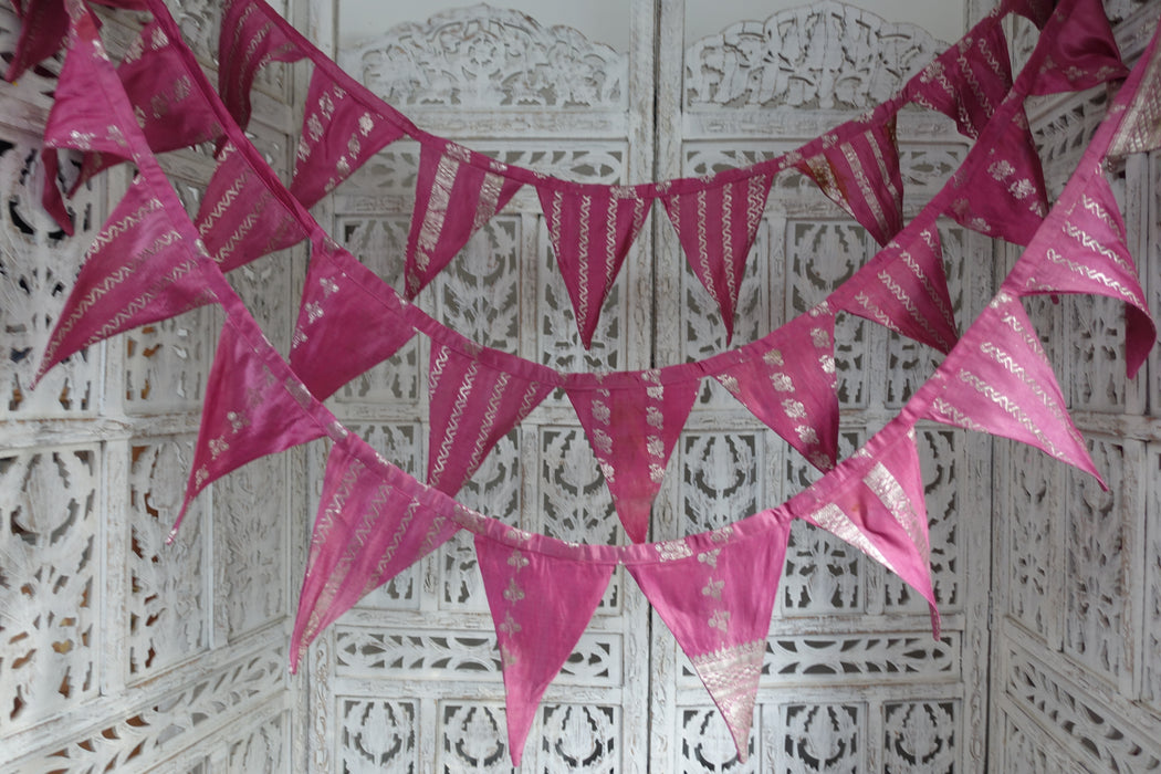 Description – this is made from a vintage banarsi brocade sateen silk sari, it is a vintage fabric that has been used.  It features silver zari work.  It does have some marks on some of the flags (see images).  Some are relatively small, others are a bit larger however the fabric was just too good not to use.   Please note these marks only affect a small number of flags.