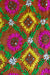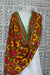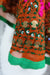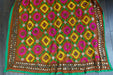 Product detail – this is a really colourful dupatta with contrasting thread embroidery and lots of matt gold sequin work. It has a rust coloured base with bright yellow, green, pink and cream embroidery.