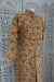 This is a stunning long jacket, it is made of stunning gold raw silk, it is lined in a faux peach silk.  The jacket is embellished with masses of zardposi work in shades of light green and peach as well as gold tilla work.   It has small hook and eyes to fasten.