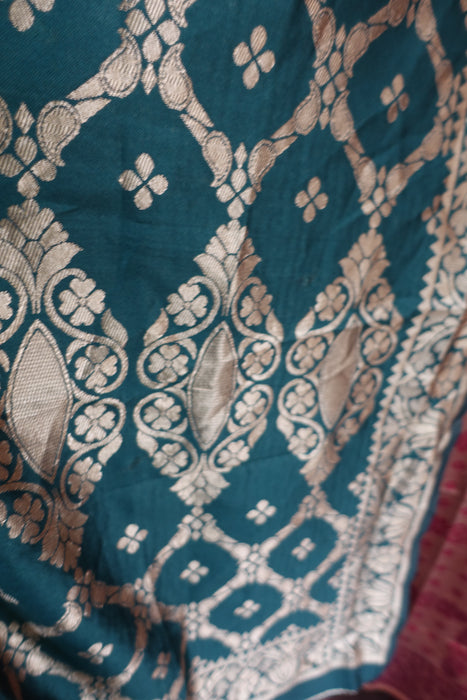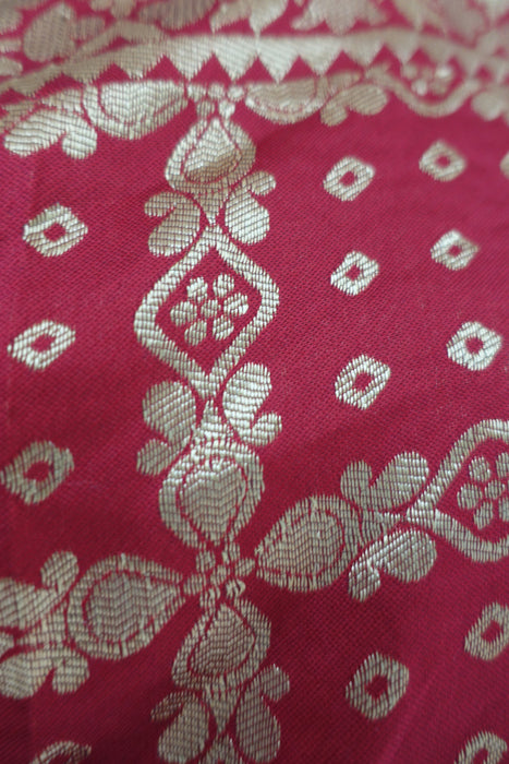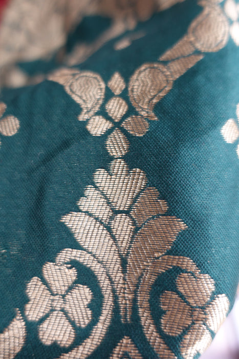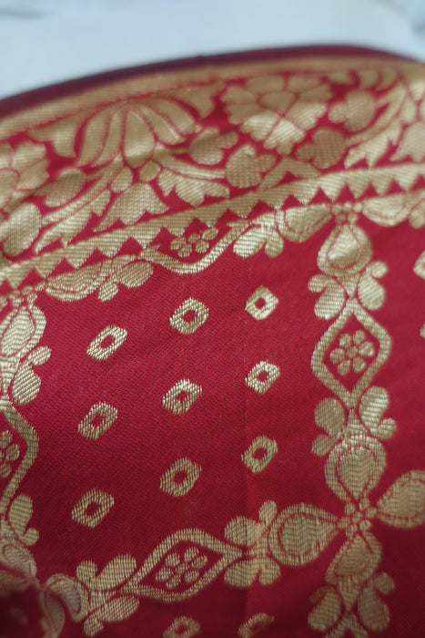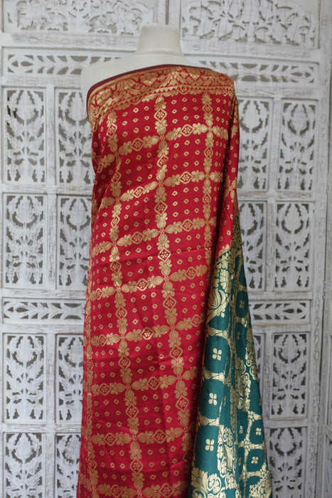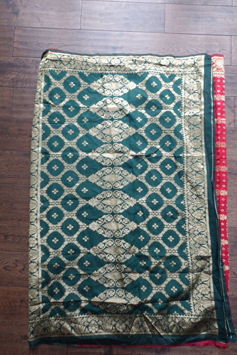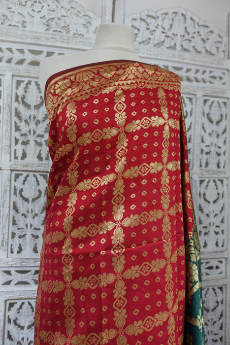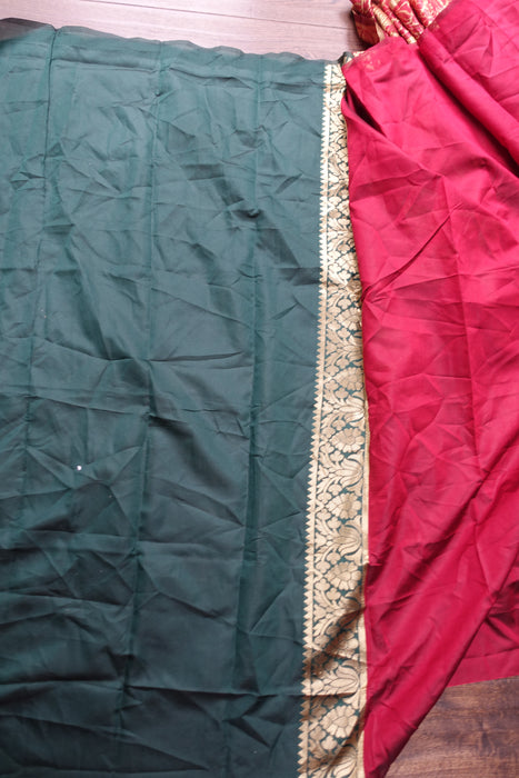 Red And Dark Green Silk Blend Sari With Blouse Piece - New