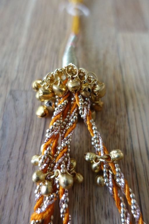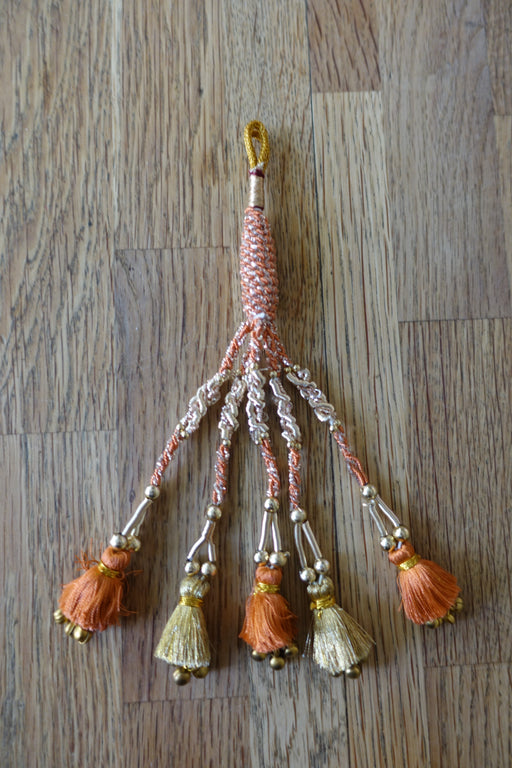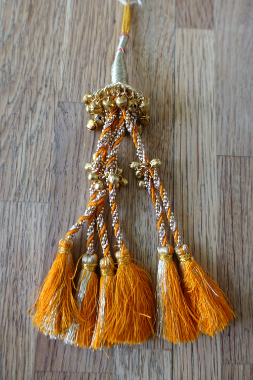 These are approximately 22cm long with orange and gold silk thread tassels and gold bells.