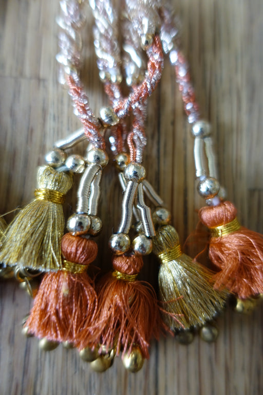 These are approximately 19cm long with peachy orange and gold silk thread tassels and gold bells.