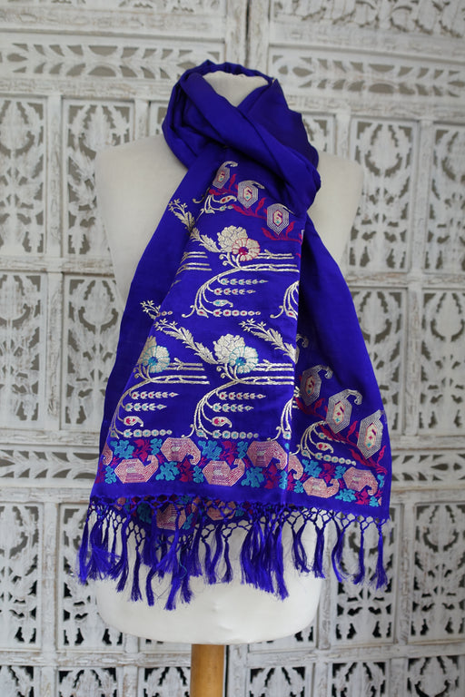 This is a vintage pure banarsi brocade silk finished with a silk fringe. It is around 25 years old and is in particularly good condition. Measur...