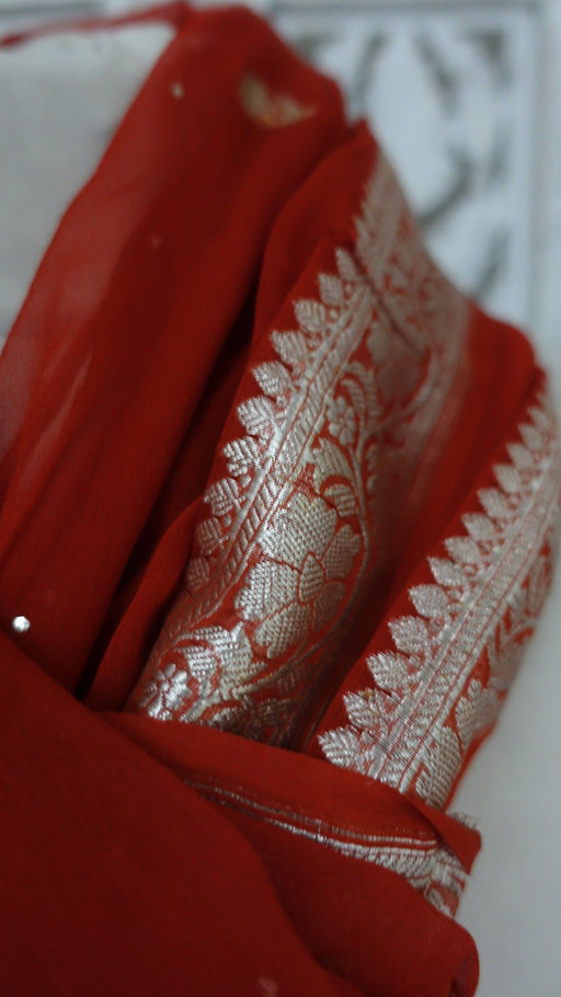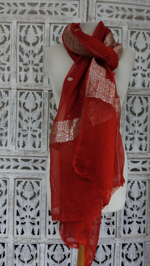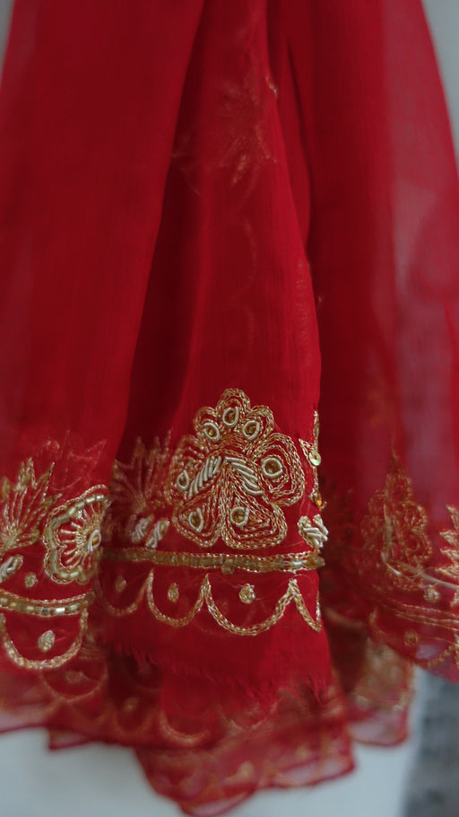 Red Silk Chiffon Vintage Wedding Dupatta - New