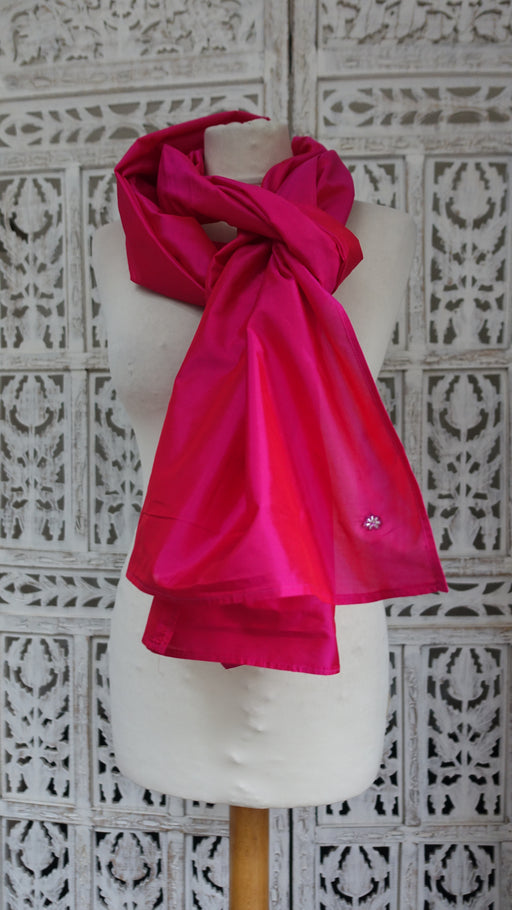 Hot Pink Silk Chiffon Vintage Wedding Dupatta - Preloved