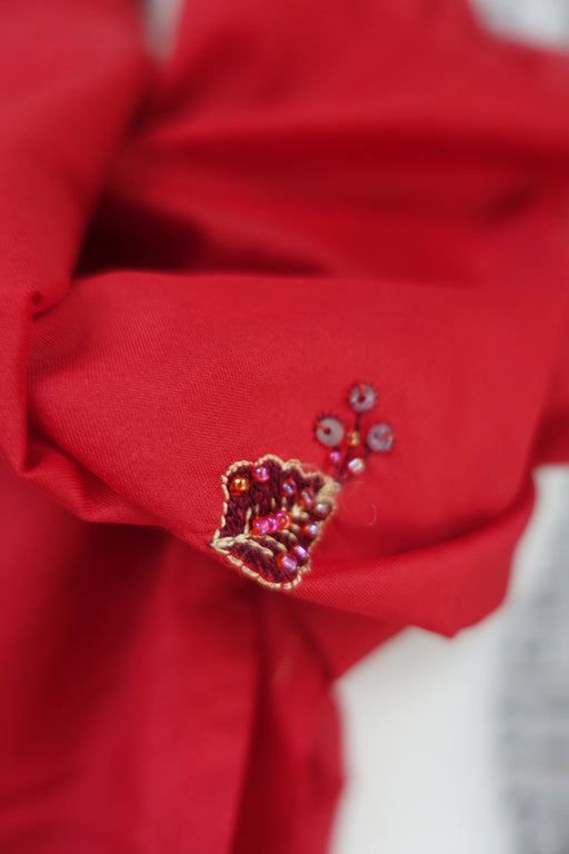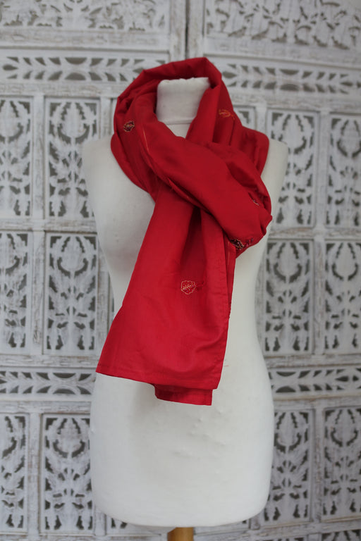 This is a vintage red silk blend dupatta, it has tiny leaves embroidery and finished with little beads and sequins.   This is a vintage piece, new ...