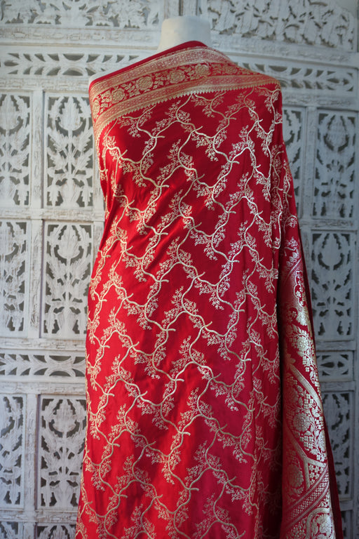 Red Silk Viole Vintage Wedding Dupatta - Preloved