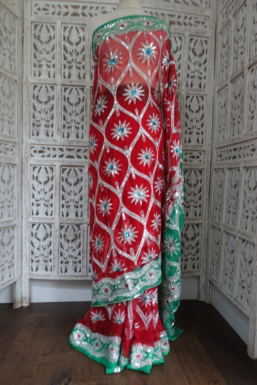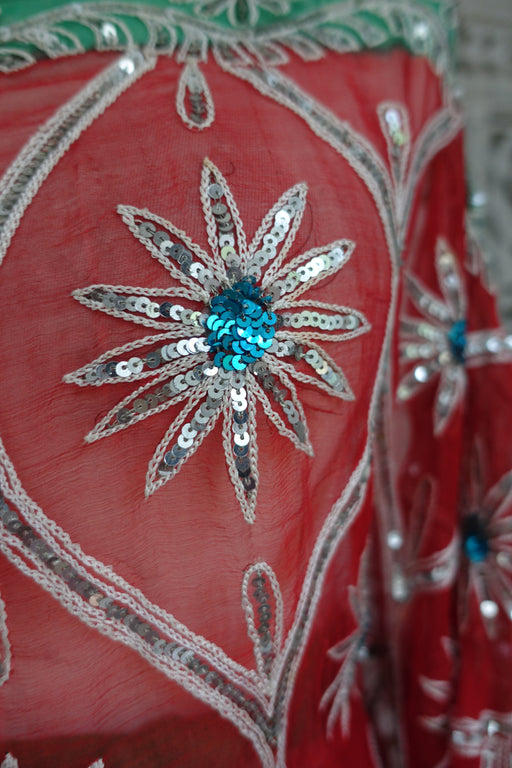 Red Vintage Sequinned Wedding Dupatta - Preloved