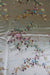 It is finished with a pink, blue and gold braid trim and measures 117 x 140cm approximately.