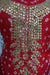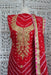 Description – This is a three piece unstitched, the kameez is a red bandhani print with gold gota patti work around the neckline.