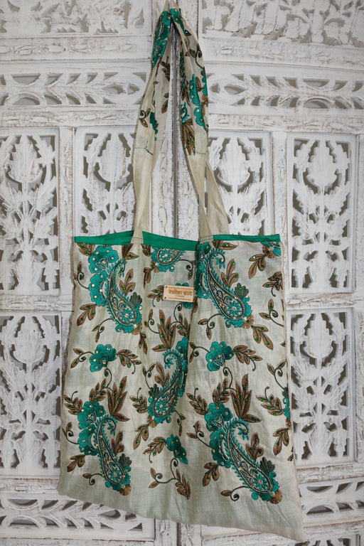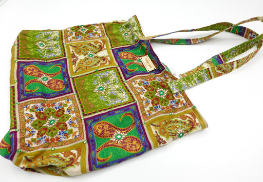 Vivid Green Cotton Ethnic Print Bag - New