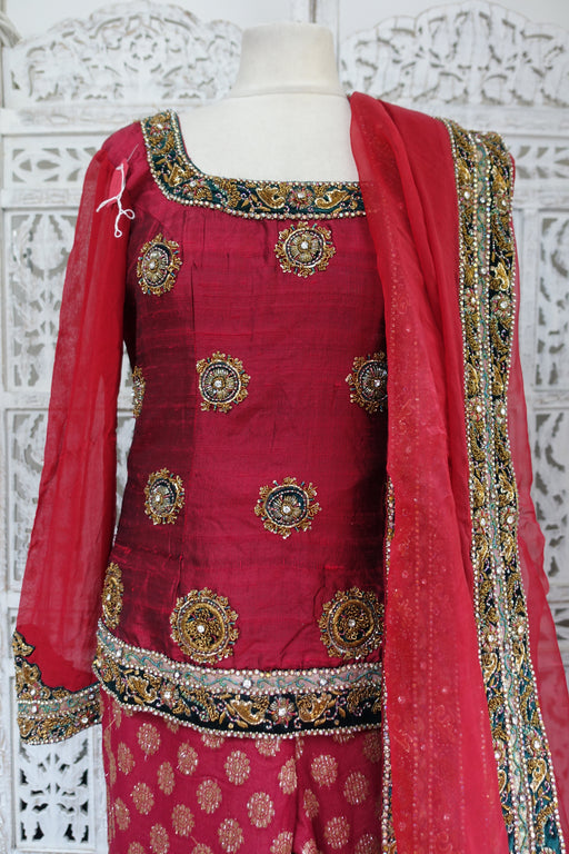 Dark Red Raw Silk Gharara - UK 10 / EU 36 - New