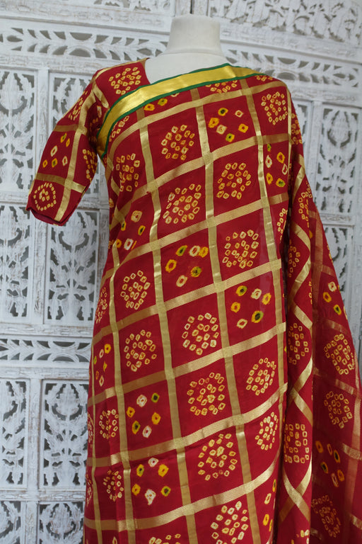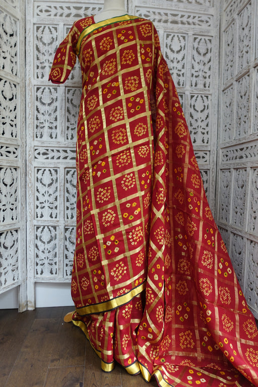 View full detailsDark Red Bandhani Chequered Sari With Blouse To Fit 36 Bust - Preloved