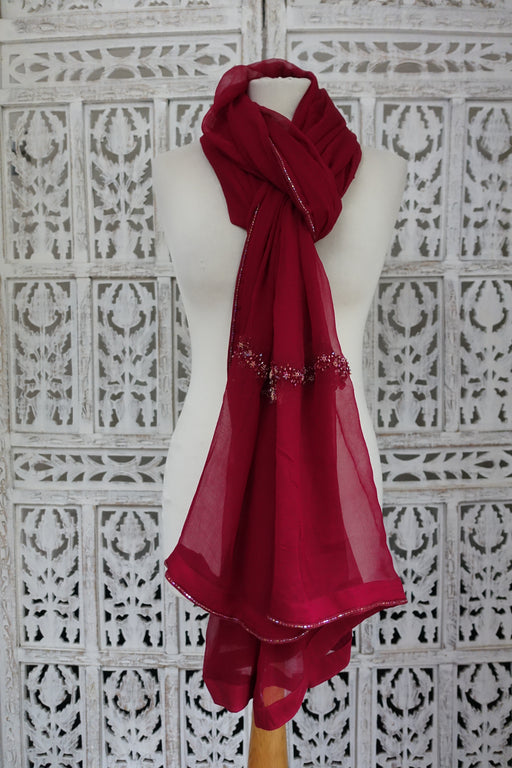 View full detailsDark Red Embellished Dupatta - New