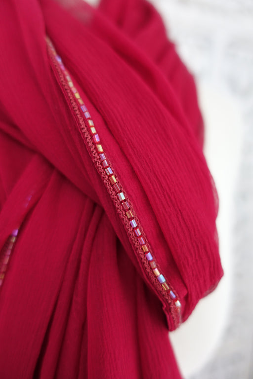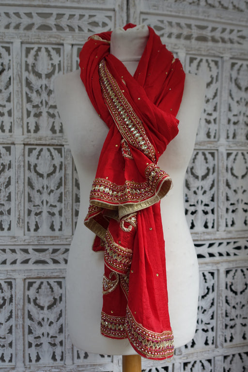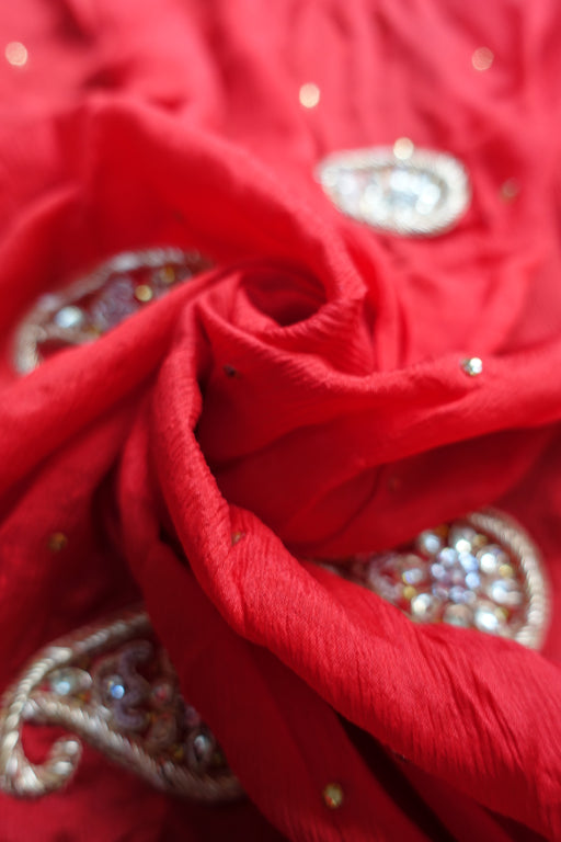 View full detailsBright Red Crushed Silk Zardosi Worked Dupatta - New