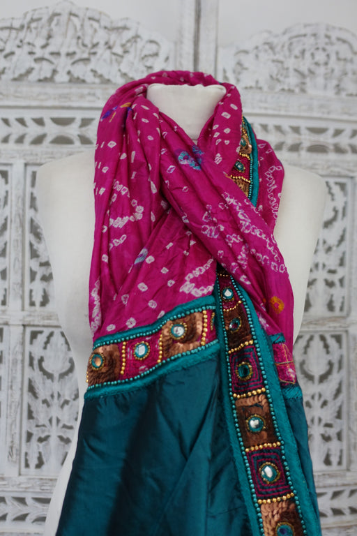 View full detailsTeal & Pink Vintage Silk Dupatta - Preloved