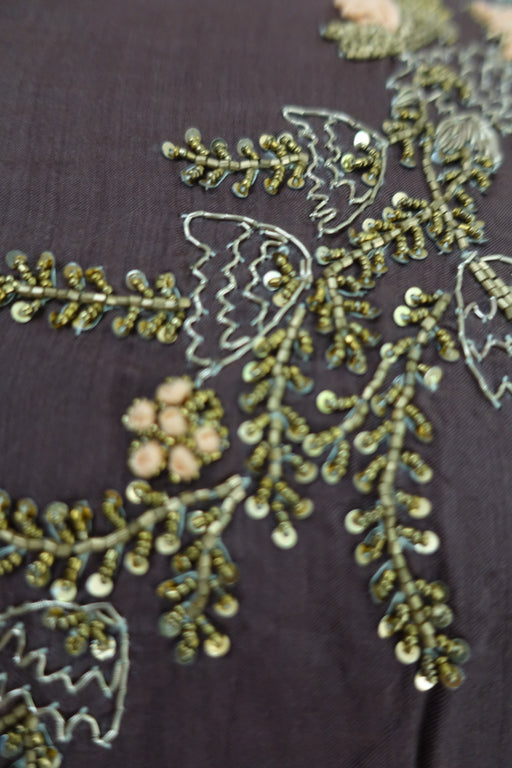 This is a dress by Monsoon, grey chiffon with scallop effect embellishment work made up of grey and anthracite silver beads and sequins.  Both back...