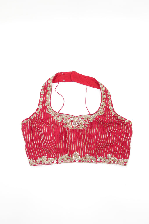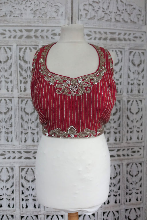 Red Silk And Silver Sari Blouse - New