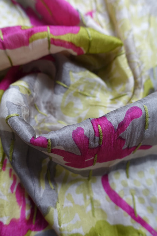 Gold Silk Block Printed Hand Stitched Scarf - New