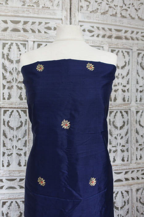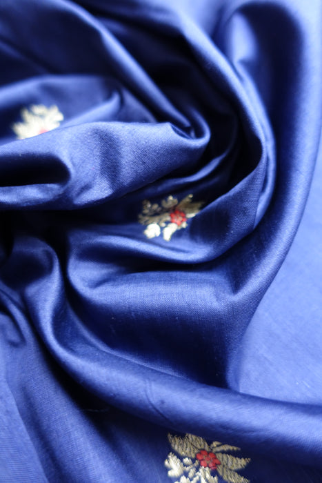Blue Banarsi Motif Pure Vintage Silk Fabric - 2-3 Metres