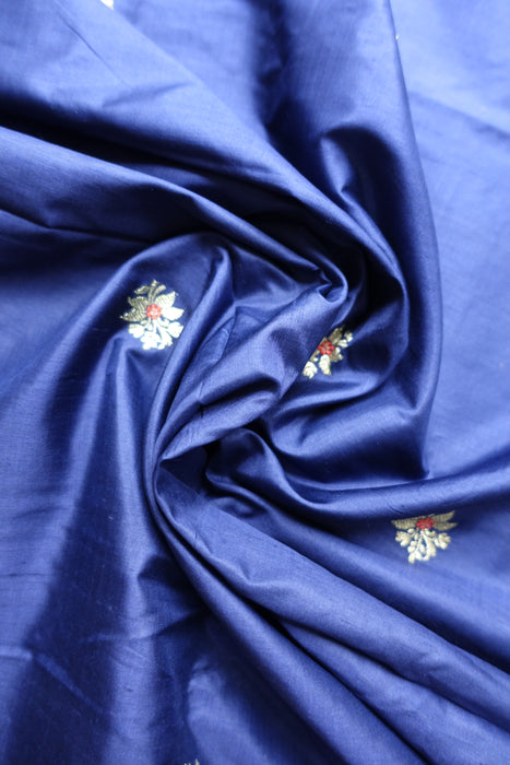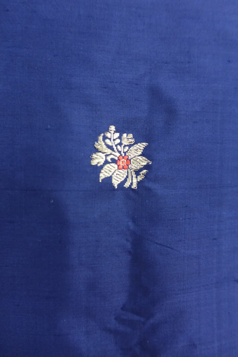 Description – vintage blue pure silk with small zari motifs woven into the fabric