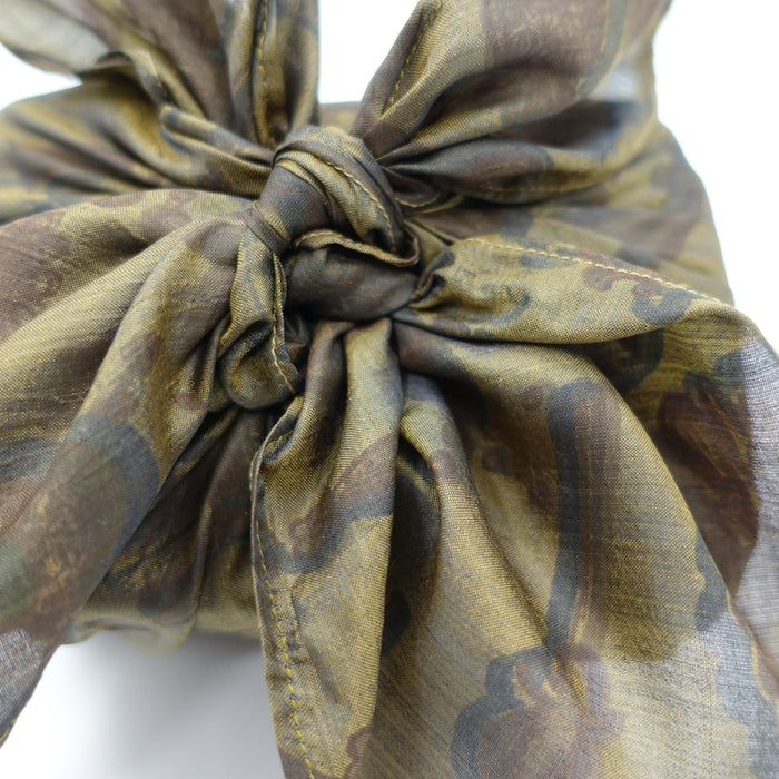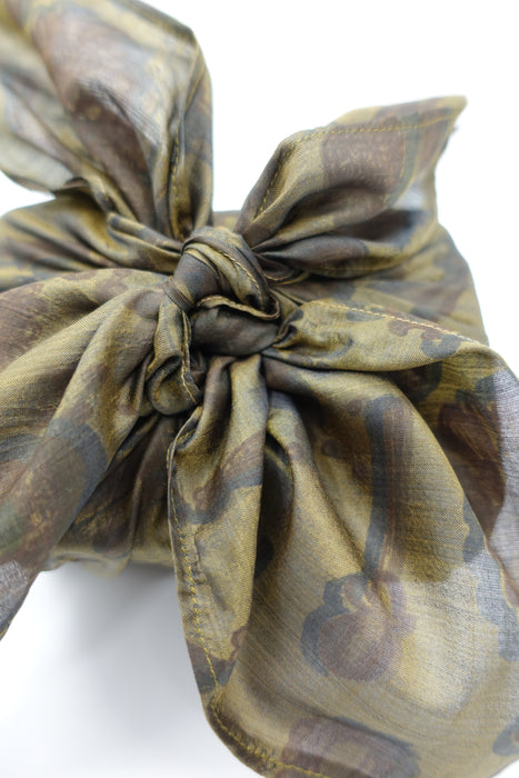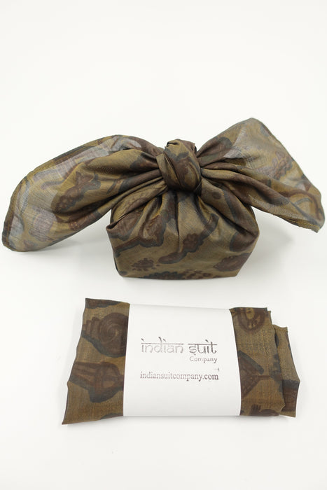 Fabric : khaki print pure silk reclaimed from a traditional sari, this is double sided with the same fabric both sides.