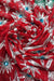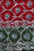 Description: A vintage treasure, this red and green wedding sari, approximately 35 years old, exudes timeless bridal elegance. It is exquisitely embellished with silver sequins and intricate white thread work embroidery and is in excellent condition.