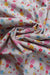 Description – this is a flower printed poly cotton fabric. It has a white background with small brightly coloured flowers printed all over.