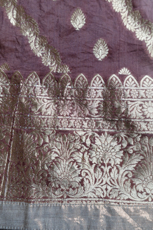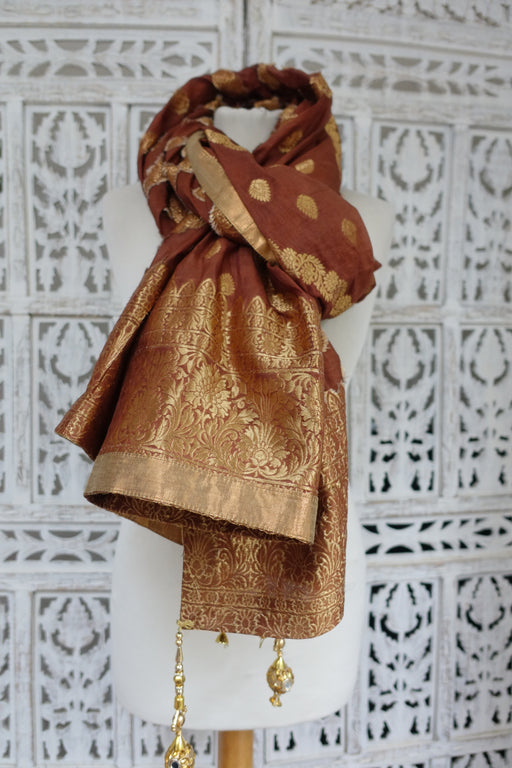 Dark Brown Pure Silk Vintage Dupatta - New