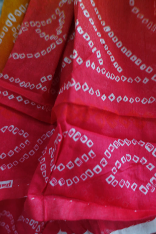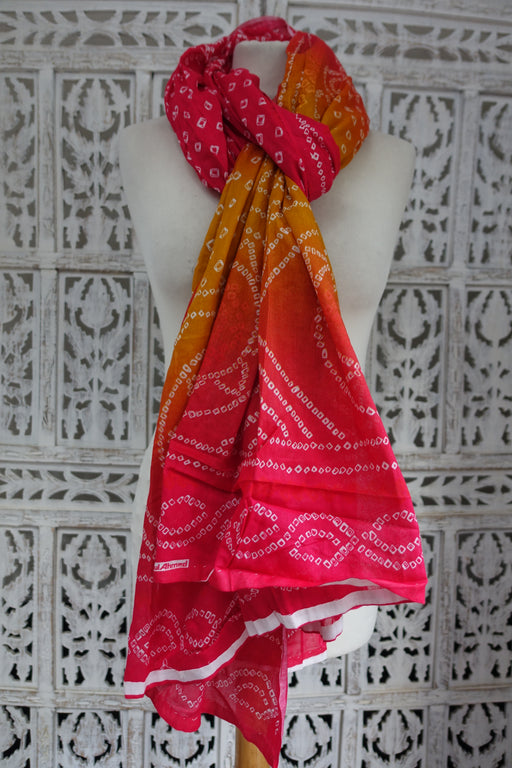 Description – this is a bandhani printed gul Ahmed cotton dupatta on shades of orange and pink. Size – 114 x 248cm