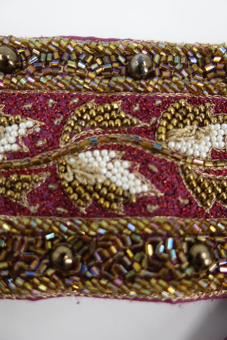 This is an embellished belt, about 12 cm wide. It has a rayon backing and is embellished with masses of beads in varying sizes and colours.