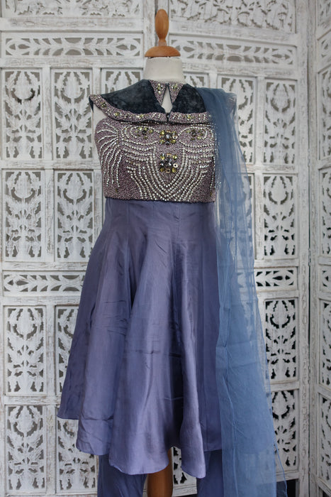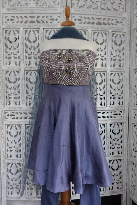 Grey Pure Silk Designer Churidaar - Size UK 8 EU 34 - New