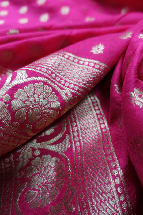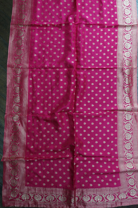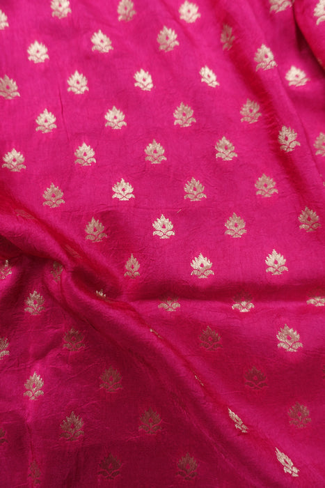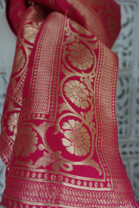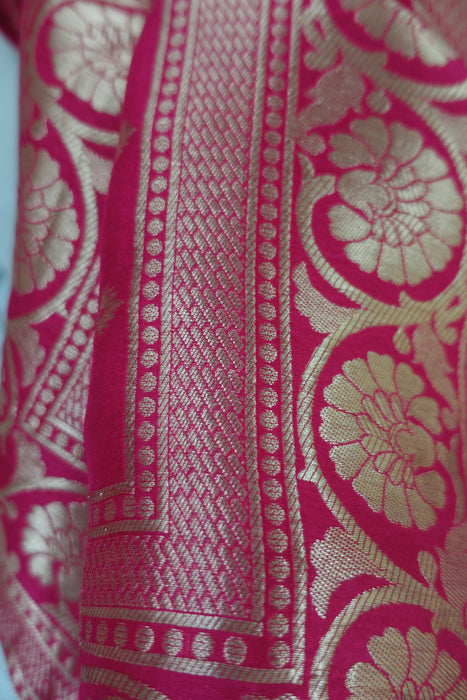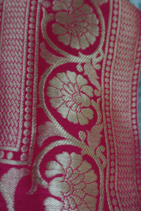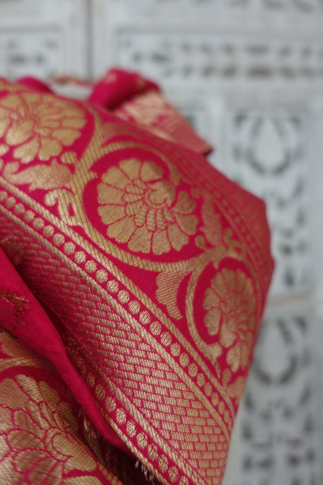 Description – this is a stunning pinky red and gold in chanderi silk. It is brand new and in excellent condition.