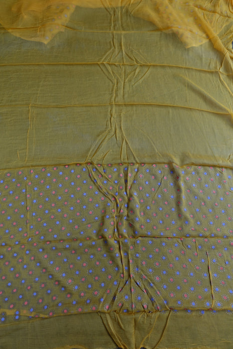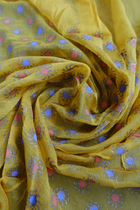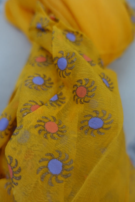 Description – this is a printed chiffon dupatta with small sunburst on it. It will need hemming.