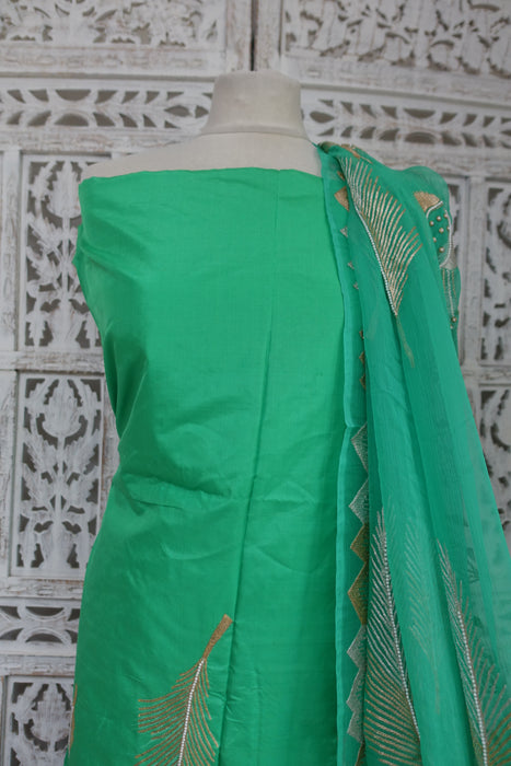 Light Mint Green Pure Silk Suit With Matching Dupatta - New