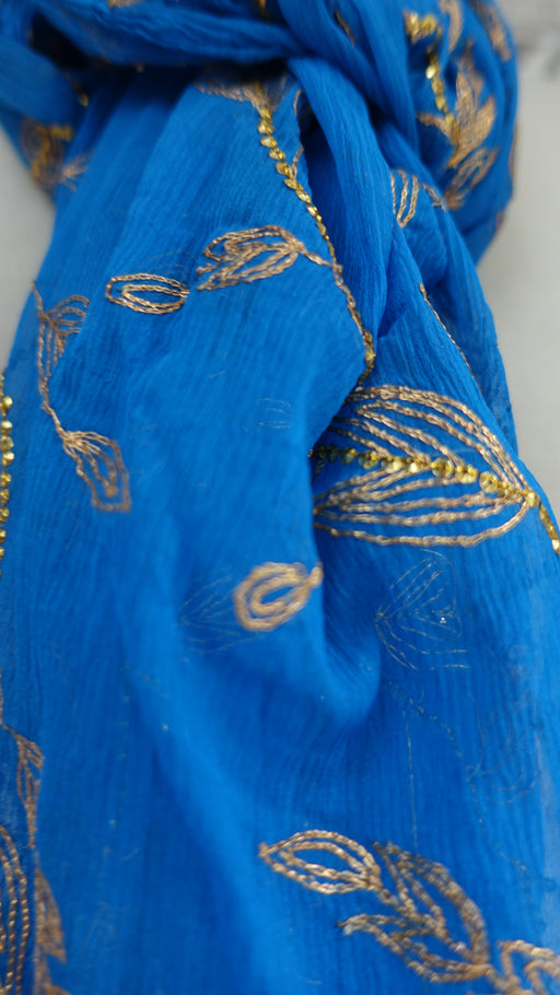 View full detailsBlue Vintage Silk Chiffon Dupatta With Zardosi Flowers- New