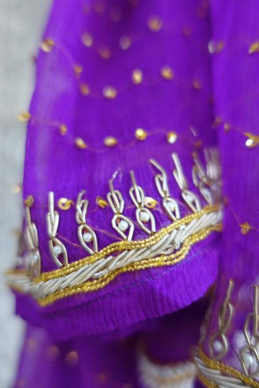 This is a vintage silk chiffon dupatta it is around 35 years old in excellent condition it is embellished with gold tilla and lots of gold sequins....
