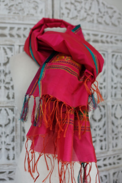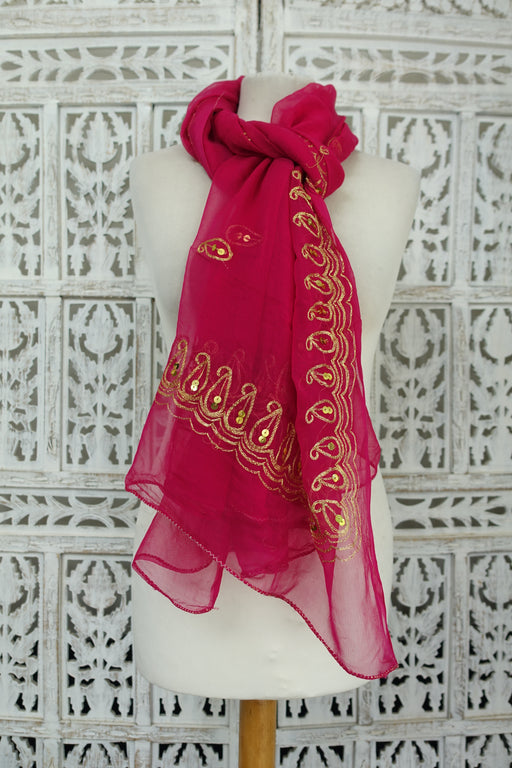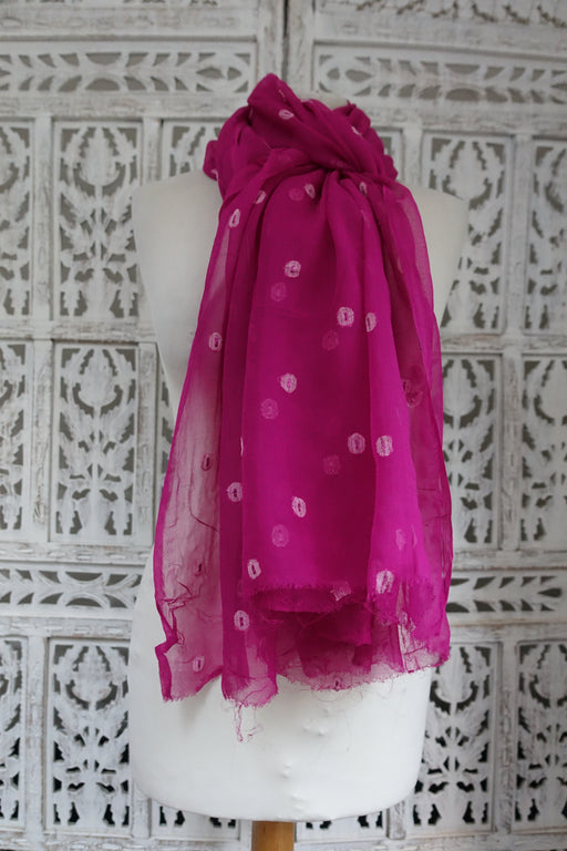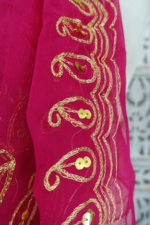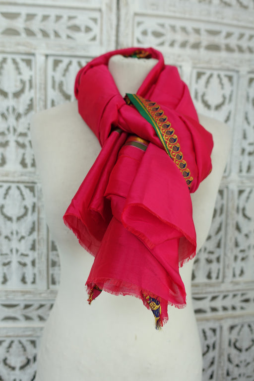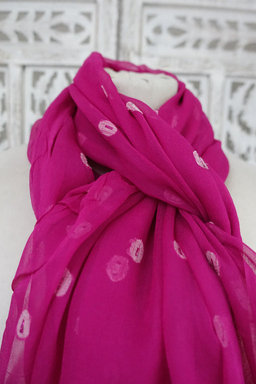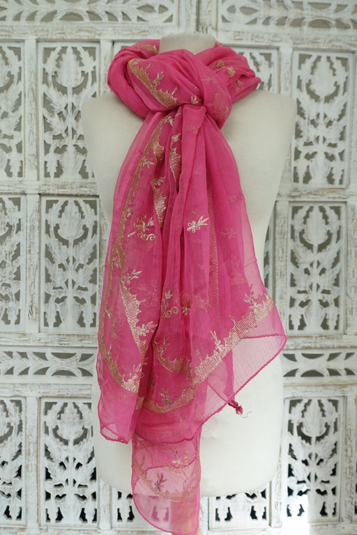 Hot Pink Silk Crepe Vintage Dupatta - Preloved