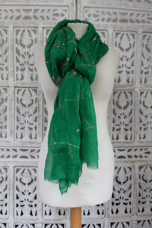Green Vintage Pure Silk Dupatta - Preloved