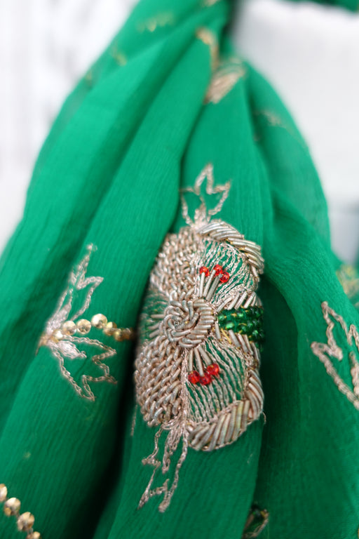 Green Vintage Chiffon Dupatta - New