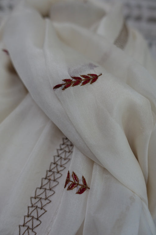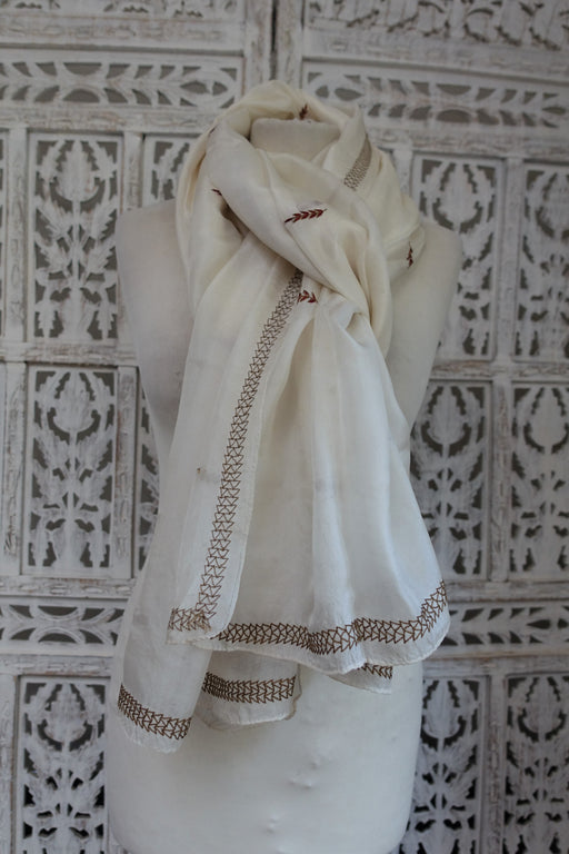 Off White Silk Vintage Dupatta - New