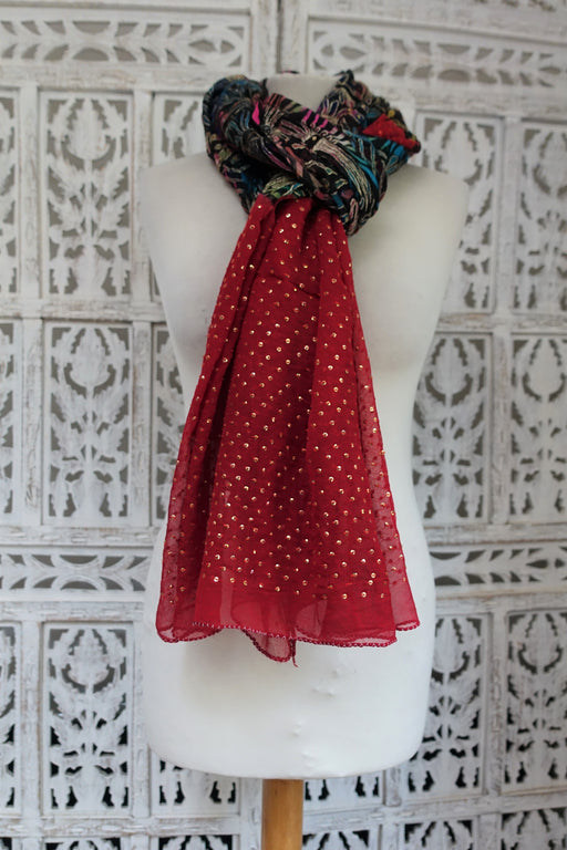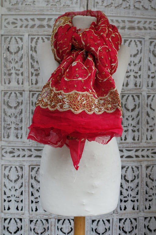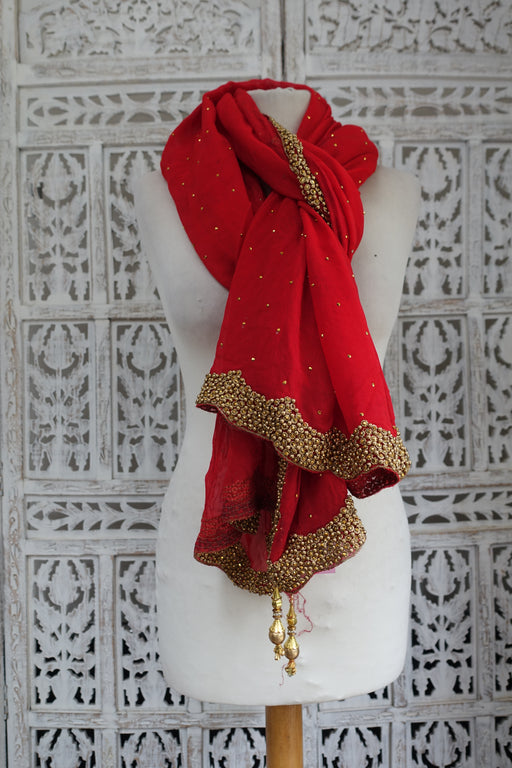 Red Sequinned Vintage Dupatta - New