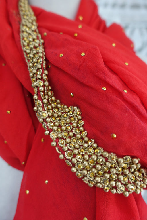 Red Chiffon Wedding Dupatta - New