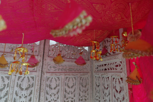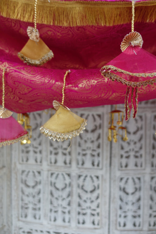 This is made of a soft pink net with real mirror work, diamante stones and beading . It has a gold braid trim on the reverse and measures 93 x 234...