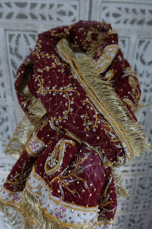 This is a vintage chiffon traditional wedding dupatta. It is brand new and is beautifully embellished with lots of zardosi, wirework and gold brai...