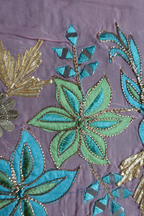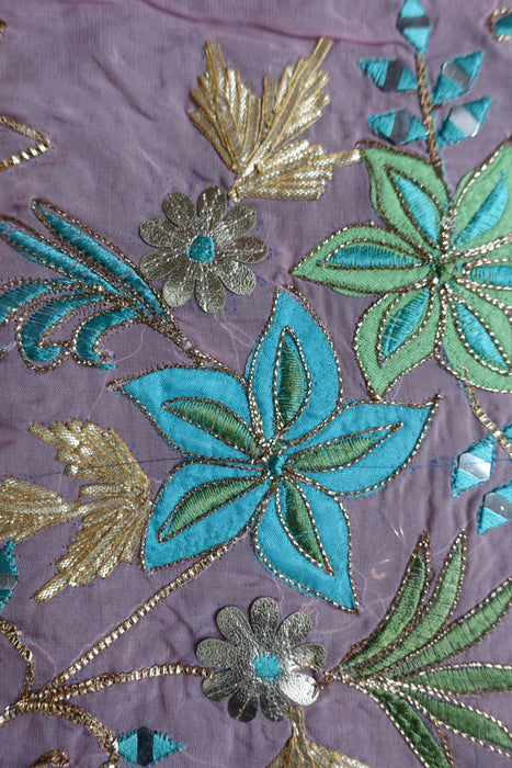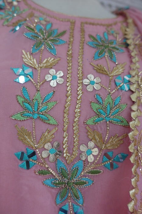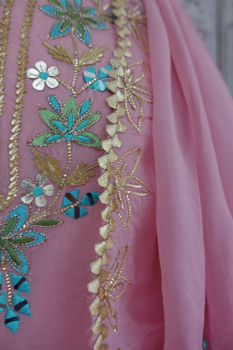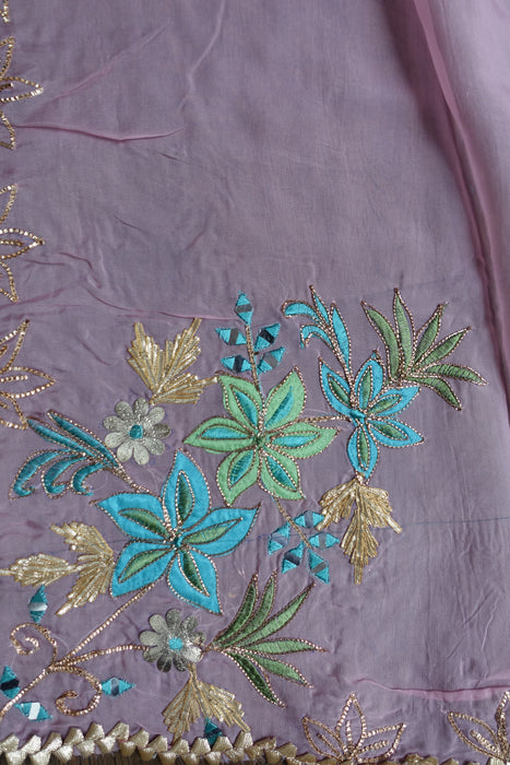 Dupatta - Is made of a silk voile It features small mirror work, applique work and lots of gota work.
